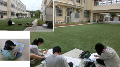 図画工作科「わたしの大切な風景」では、校内の印象的な場所・お気に入りの場所などを描いています。その場所には個性が表れますね。みんな丁寧に表現しています。