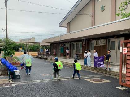 雨模様の週初めとなりましたが、5・6年生が元気なあいさつで迎えてくれました。