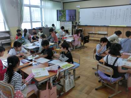 国語科「わけをはなそう」の学習です。人と話すときに、自分の考えと、そう考えたわけを話すことの大切さを知り、実際に話し合ってみます。この先ずっと必要になる、基礎的な力となります。