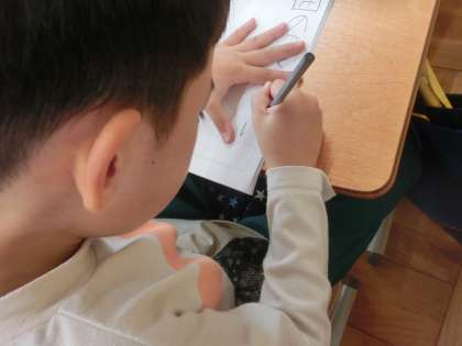 図書館で本の返却・貸し出しをしたり、国語の学習に取り組んだりしました。どんどんできることが増えています。たった2か月、されど2か月。子どもたちの吸収力はすごいですね。