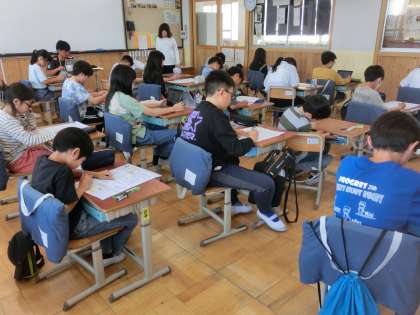 算数科「小数のかけ算」では、単元まとめの学習を行ったり、テストに取り組んだりしました。落ち着いた表情から、きっとしっかりと身についていることと感じます。