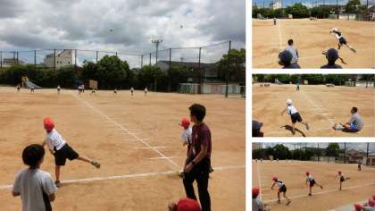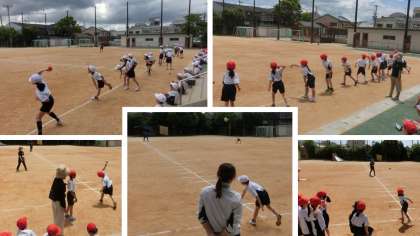 1〜5年生は体力テストで、ソフトボール投げに取り組みました。(6年生は都合により、明日実施です)