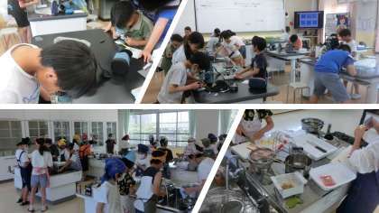 家庭科では、青菜とジャガイモをゆでる調理実習を行いました。包丁などの使い方も、安全に気をつけて学習します。おいしくできましたよ♪