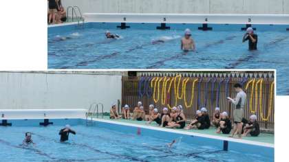 また今日は、6年生になって初めての水泳学習!まずは現時点での泳力を確認しました。久しぶりの水泳、慎重に活動しました。