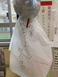 6年生が、てるてる坊主を作ってくれました。昨年先輩が作ってくれたことを覚えていたようです。その気持ちも届いたからこその天気でしょう!6年生、ありがとう??
