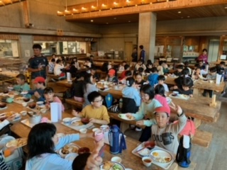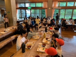 夕食です。お腹もすき、思い思いのメニューをしっかりいただきました。