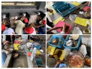 野外炊事の様子です。