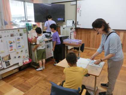 朝には個別にそれぞれのめあて、ペースで活動に取り組みました。また、交流学級では、山の家のふり返りを行いました。