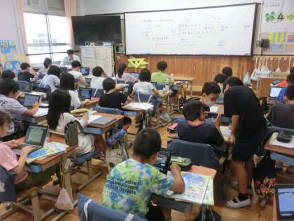理科では、乾電池の数やつなぎ方と電流の大きさにはどのような関係があるのだろうか、というめあてで予想し、実験で確かめました。たくさん気づくことがあったようです。