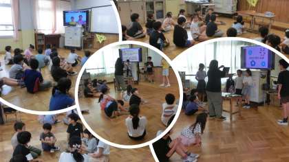 なかよし集会では、遊びを振り返ったり、2年生のすきなものクイズを楽しんだりしました。