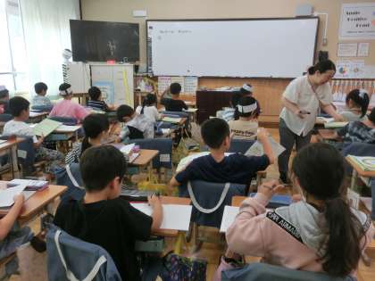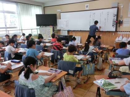 国語科「仕事のくふう 見つけたよ」では、伝えたいことをはっきりさせて、下書きに取り組みました。