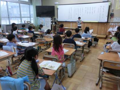 国語科では、カタカナ「リ」の練習をしました。また、「おむすびころりん」の音読発表もしました。しっかりと自分の意識するポイントをおさえた読みができました。