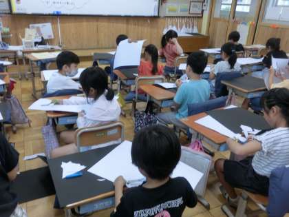 図画工作科では「はさみのあーと」の学習です。ハサミの安全な使い方を学びながら、造形を楽しんでいます。