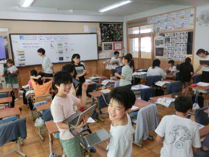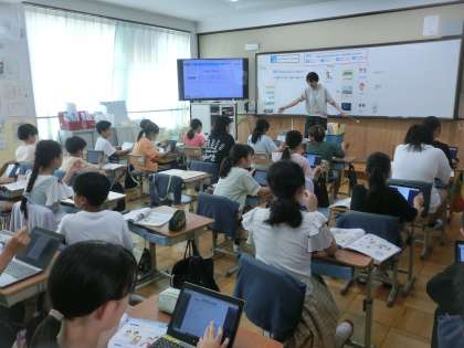 外国語では、この夏の思い出を伝え合うために必要な表現を身につけます。6年生、外国語の語彙も増えています。