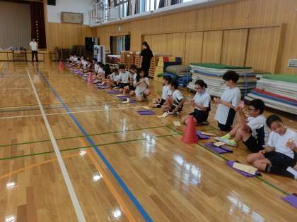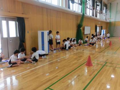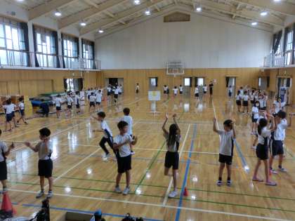 運動会に向けて表現運動の練習です。今日は初めて四竹を手にしました。練習するごとに、形になっていきます。