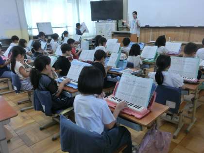 音楽科では「虫のこえ」を鍵盤ハーモニカで演奏しました。リズムにのって、楽しく演奏します。