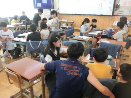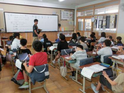 算数科では、公倍数を用いて文章題を解きました。何を尋ねられているかをしっかりと読み取り、考えます。