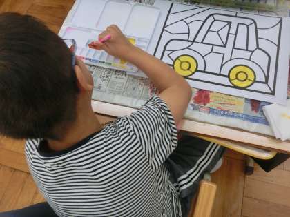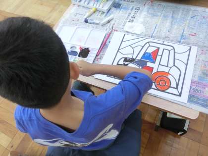 図画工作科で、水彩絵の具での彩色を学習しました。自分の表現したい色を考えながら、ていねいに取り組みました。