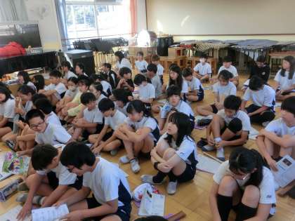 小中合唱交歓会も近づいています。今日は学年みんなで『翼をください』などの合唱練習に取り組みました。しっかり発声し、声を響かせました。6年生は運動会に修学旅行、合唱交歓会と、忙しいながらも充実した日々です。