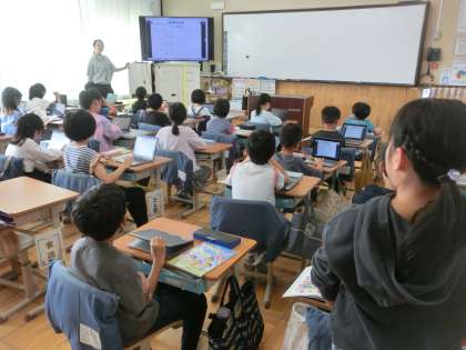 英語の時間には、アルファベットの学習をしました。また、天気を表す言葉など、いくつかの英語表現も学習しました。