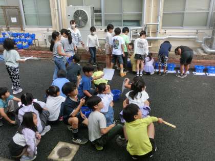 理科では、久しぶりにお日様が照ったので、太陽と影の向きを確認しました。これからも続けて調べていきます。