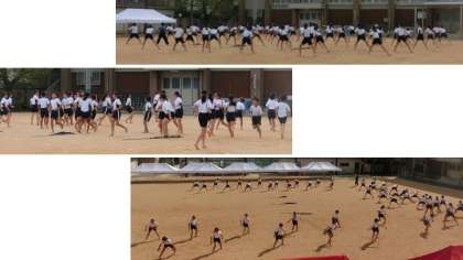 運動会で行う演技の映像を視聴して動きを確認し、気持ちを高めました。改めて気合を入れ直し、本番に挑みます。