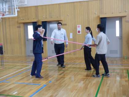 また訓練後に教職員は、「さすまた」の使い方を中心に不審者対応についても教えていただきました。