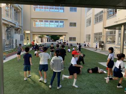 晴天で涼しく、久しぶりに爽やかな朝でした。中庭ではたくさんの子たちがゆったり楽しそうに過ごしていました。