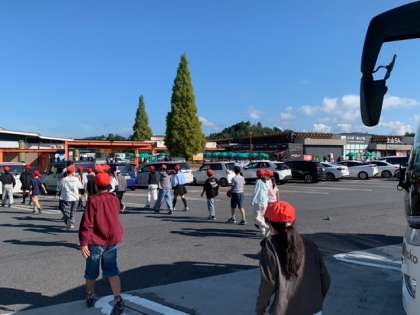 京都東ICで混み合いましたが、土山SAでの休憩を終え、バスは名古屋へと向かっています。みんな元気です。