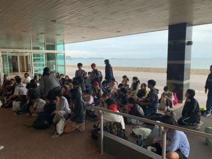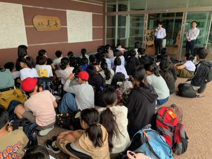 退館式を行いました。美味しい食事と快適な時間をありがとうございました。一泊お世話になったみなさんにお礼の言葉を伝え、宿をあとに。リトルワールドに向かいます。