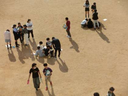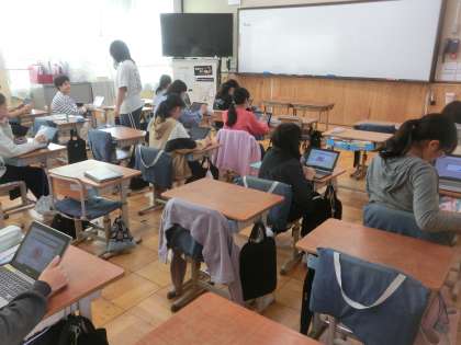理科の学習で、太陽と月の位置などを観察しました。双方の位置関係や現象に目を向けます。観察の後は、結果をまとめたり、端末で問題に取り組んだりしました。