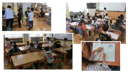 図書館で本を借りたり返したり。また新しい本に出合って、読み込む姿も見られます。