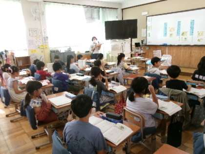 国語科「お手紙」の学習です。場面ごとにがまくんとかえるくんの気持ちを考えるとともに、主語・述語についても学習しています。
