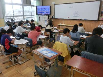外国語では、道案内をする表現について学習しました。「Go straight」「Turn left」など、実際に使いながら身につけていきます。