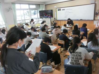 学習発表会に向けて、役割やセリフを確認し、脚本の読み合わせをしました。もうすでに思いを込めた演技をしながら話そうとする姿も見られます。やる気を感じます。さすが6年生です。これから高まっていく様子が見られそうで、楽しみです。
