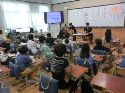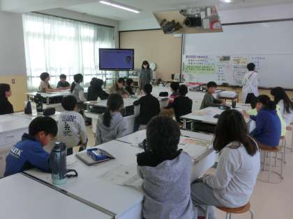 国語科では、資料を有効活用しての発表です。資料の役割や効果を意識して話したり聞いたりしました。