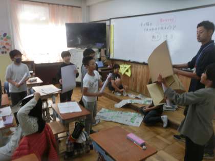 学習発表会の際に必要な道具について、必要なものは何かなどを相談し、制作に取り掛かりました。自分たちの思いを、発表や道具に込めていきます。