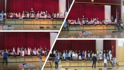 学習発表会に向けて、舞台での練習を行いました。照明があたり、緊張感も心なしか高まりますが、みんな思いっきり表現することができていました。