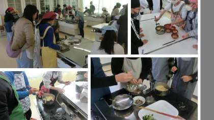 家庭科では、調理実習でおみそ汁をつくりました。協力してだしからつくったおみそ汁はとっても美味しかったです。