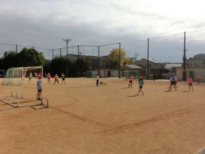 体育科「ハンドボール」では、運動の特性にも慣れ、動きや声かけが活発になっています。ねらいを意識して取り組めているからこその姿です。