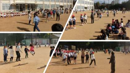 体育科は「なげあそび」です。ボールを投げる基本的な運動を楽しみながら身につけていきます。