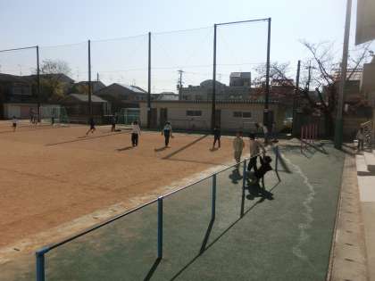 お天気も良く、運動場ではたくさんの人が遊ぶ姿が見られます。お互いに気を配りながらうまく遊べているかな・・・?それも大事な経験と学びです。