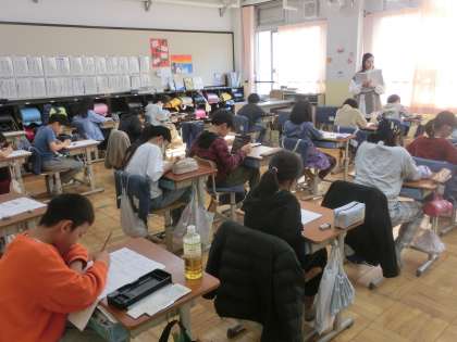 音楽科ではテストに臨みました。拍子や記号、音符の種類など、これまでの学習で身につけた内容について確認しました。
