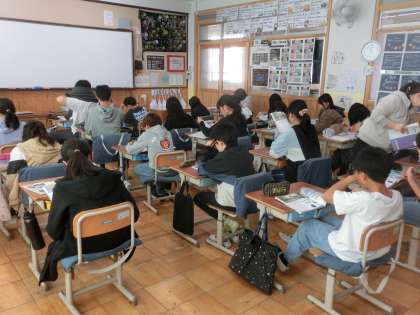 理科では、単元の学習内容を改めて確認したあと、テストに臨みました。