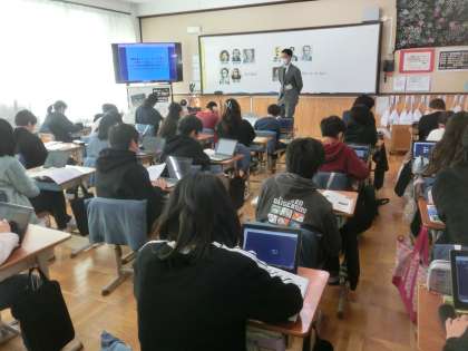 社会科では、日本の国際的地位の向上に尽力した人物に焦点を当て、一人を選んでその貢献について調べ学習を進めました。