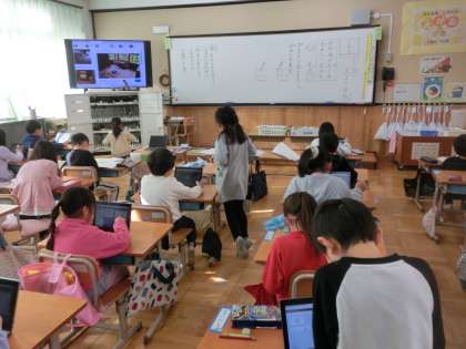 漢字の学習にミライシード、読書や道徳ノートのふり返り。12月、期末が迫ると、それぞれの課題にそれぞれのペースで取り組む時間も出てきます。1年生も、そうした個別の動きができるまでに成長しています。