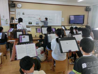 音楽科では、言葉と旋律の美しさを感じ取りながら、日本の歌を味わいました。滝廉太郎の歌曲を通し、気づいたことを交流しました。