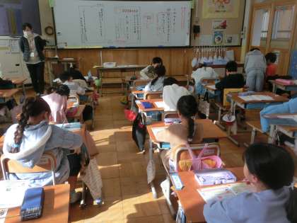 国語科「てがみをかこう」では、年賀状のかきかたを学習しました。宛名の書き方や、時季に応じたメッセージなどを練習しました。手書きの手紙は減っていますが、知っておくことは大切ですね。