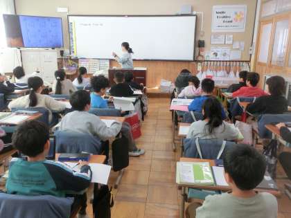 算数科ではかけ算の筆算の学習を重ねています。学習の前には100マス計算でウォーミングアップも。集中して取り組む姿が素敵です。