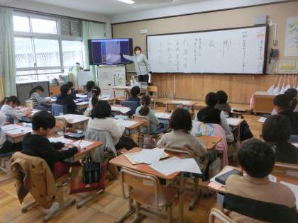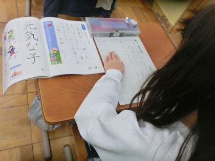 書写で、お正月のできごとを書きました。文字の中心を意識しながら、とても丁寧に書くことができました。